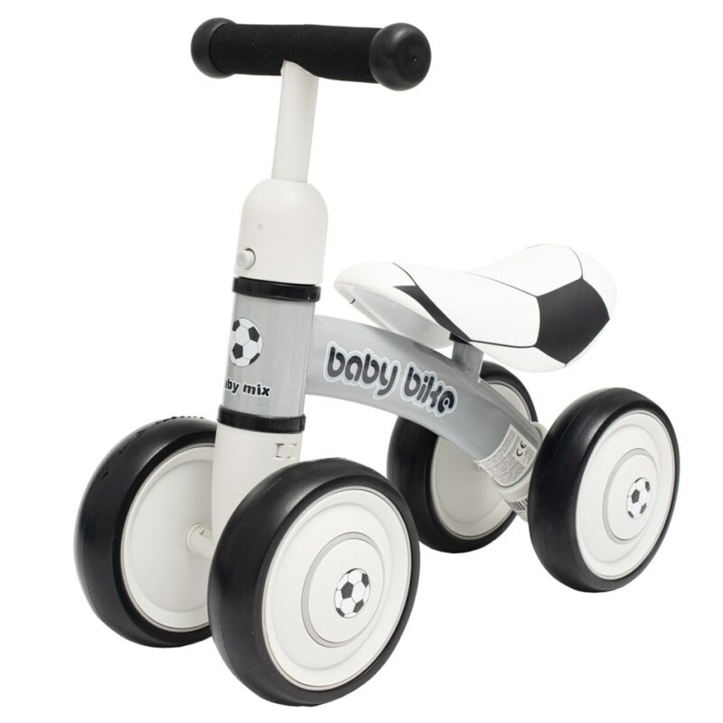 Detské odrážadlo Baby Bike je určené tým najmenším pretekárom a pretekárkam. Je ideálny v čase, keď sa dieťa učí držať rovnováhu a koordináciu pohybov celého tela. Je tou najlepšou alternatívou pre bicykel s bočnými kolieskami, pretože neskoršia jazda na klasickom kolese bude oveľa jednoduchšia. Vďaka použitiu dvojitých kolies a pevného oceľového rámu je stabilný a bezpečné. Penové, ergonomicky tvarované sedadlo je ozdobené motívom futbalovej lopty a je príjemne mäkučké. Baby Bike má blokádu riadidiel, takže sa nemusíte obávať nekontrolovaného pádu, keď sa váš malý športovec začne učiť manévrovať. Dvojité penové kolieska skvele absorbujú nerovnosti a poskytujú perfektnú priľnavosť na všetkých povrchoch. Povrch stabilného a extrémne ľahkého kovového rámu je ošetrený zdravotne nezávadnou farbou metódou nástreku, čo zaistí väčšiu životnosť a odolnosť proti poškriabaniu.Rozmery odrážadla: