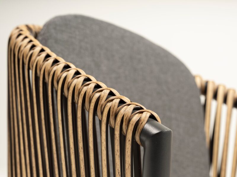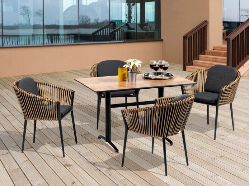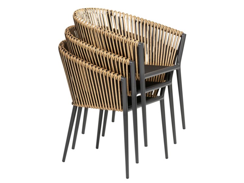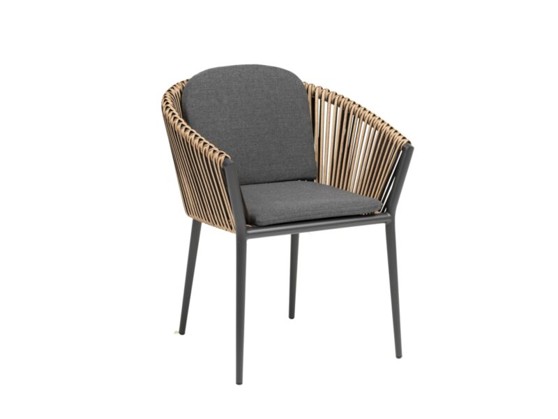 Pohodlná jedálenská stolička z kolekcie Bahamas je prispôsobená dlhému sedeniu na terase.