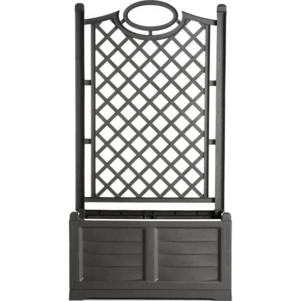 Jemná mriežková opora dosahujúca výšky 150 cm v hornej časti slúži ako ideálna opora pre popínavé rastliny a je možné ju umiestniť buď na okraj kvetináča, alebo do stredu podľa vašich požiadaviek.S podný veľkokapacitný truhlík poskytne dostatok miesta aj pre vyššie okrasné trávy, kríky či bylinky. Vďaka důmyslnému riešeniu dna je možné truhličok doplniť drenážnou vrstvou pre lepší odvodnenie.