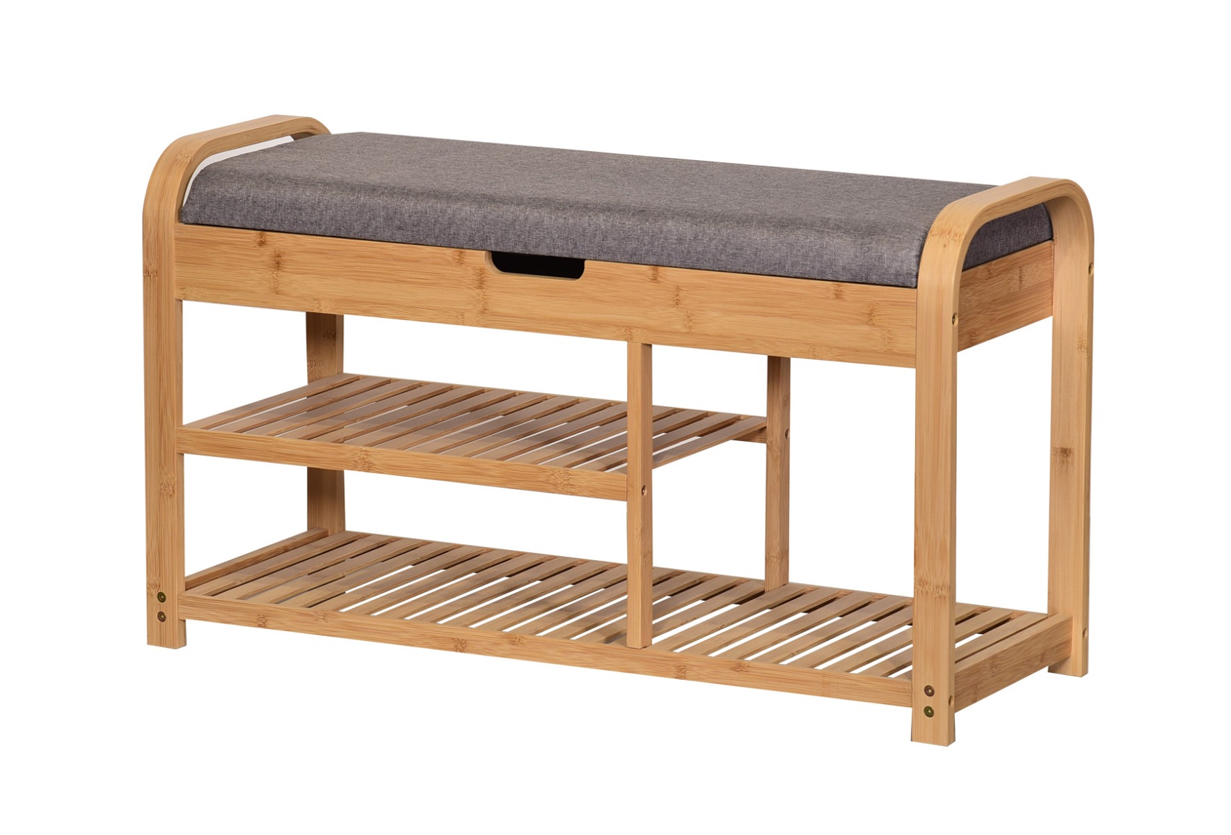 Botník so sedákom BAMBOO vďaka svojim rozmerom nezaberie príliš veľa miesta ale ponúka dostatok úložného priestoru pre všetky Vaše topánky. Tento botník so sedákom je vyrobený z masívneho bambusového dreva v prírodnom odtieni. Sedák je v cene a je čalúnený kvalitnou poťahovou látkou v šedej farbe. Botník so sedákom je otvorený a obsahuje dve priestranné police pre dostatok topánok.Nosnosť botníka je 60 kg.Materiál: masívne bambusové drevo / šedá tkaninaRozmery: Šírka: 90 cm Hĺbka: 30 cm Výška: 47 cmDodávame v demonte.Nábytok z bambusu je teda skvelou voľbou pre tých, ktorí podporujú ekológiu, prírodné materiály a jednoduchý dizajn.