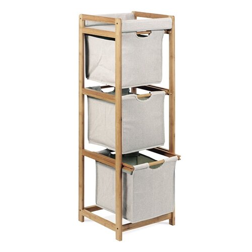Moderný štýlový regál so zásuvkami je vhodný na použitie do predsiení, hál alebo kúpeľní. Skvele sa hodí na odkladanie rôznych doplnkov a potrieb v domácnosti. Nosnosť zásuvky je 2,5 kg.Materiál: bambusová konštrukcia, textilné zásuvky. Zásuvky nie je možné udržiavať praním z dôvodu všitej papierovej výplne.