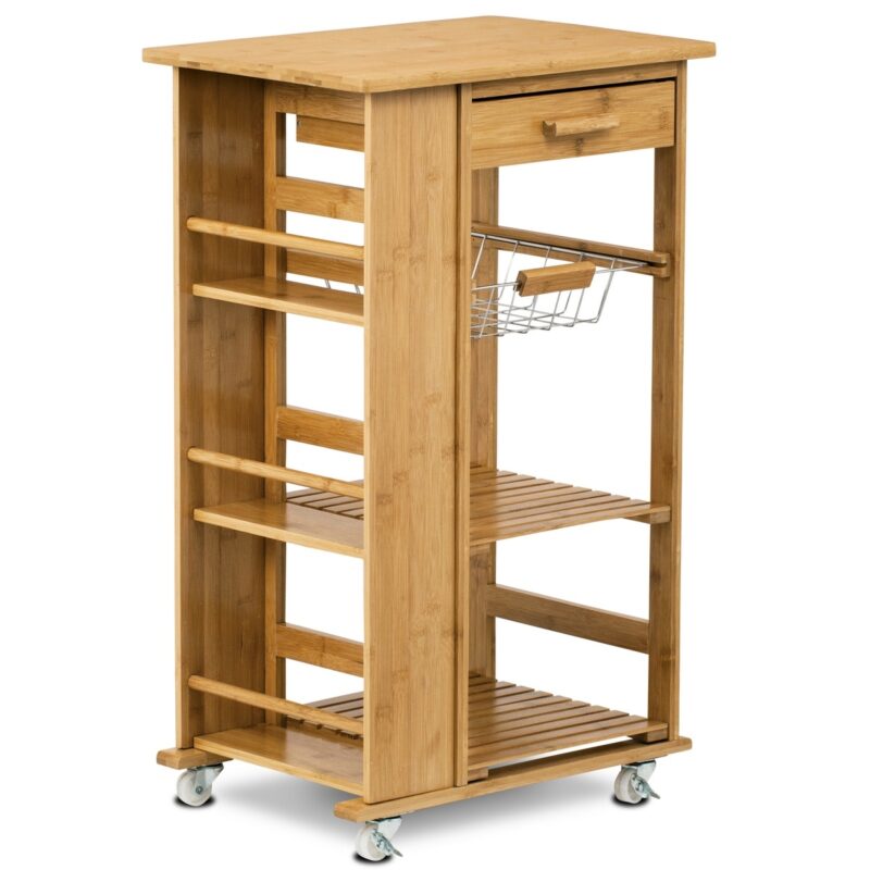 Bambusový servírovací stolík/policový regál na kolieskach, 50 x 37 x 83 cm