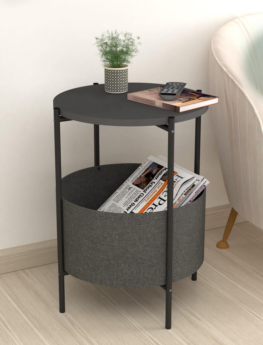 BANDE je konferenčný stolík, ktorý vás zaujme nie len svojou praktickosťou, ale tiež výhodnou cenou. Disponuje košom na uloženie rôznych vecí.Vrchná doska stolíka je z LTD materiálu, ktorý je nenáročný na údržbu. Hrúbka 18 mm. Konštrukcia je z kovu v čiernom farebnom prevedení. Košík na uloženie vecí je vyrobený z kvalitnej látky. Je možné ho oprať.Rozmery:Priemer: 43 cmVýška: 60 cmVýška od podlahy po košík: 12 cmVýška košíka: 21,5 cmPriemer košíka: 44,5 cmDodávame v demontovanom stave.