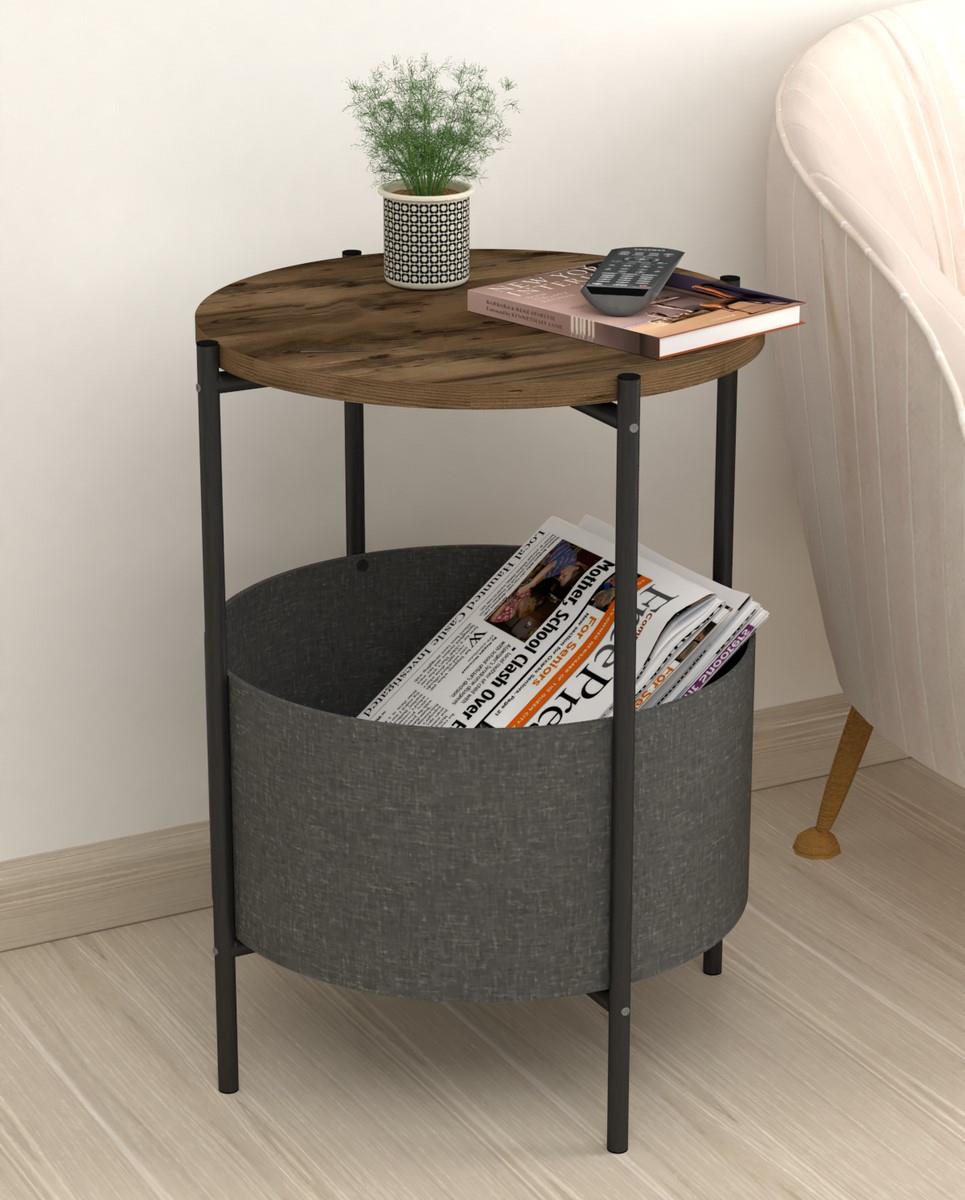 BANDE je konferenčný stolík, ktorý vás zaujme nie len svojou praktickosťou, ale tiež výhodnou cenou. Disponuje košom na uloženie rôznych vecí.Vrchná doska stolíka je z LTD materiálu, ktorý je nenáročný na údržbu. Hrúbka 18 mm. Konštrukcia je z kovu v čiernom farebnom prevedení. Košík na uloženie vecí je vyrobený z kvalitnej látky. Je možné ho oprať.Rozmery:Priemer: 43 cmVýška: 60 cmVýška od podlahy po košík: 12 cmVýška košíka: 21,5 cmPriemer košíka: 44,5 cmDodávame v demontovanom stave.