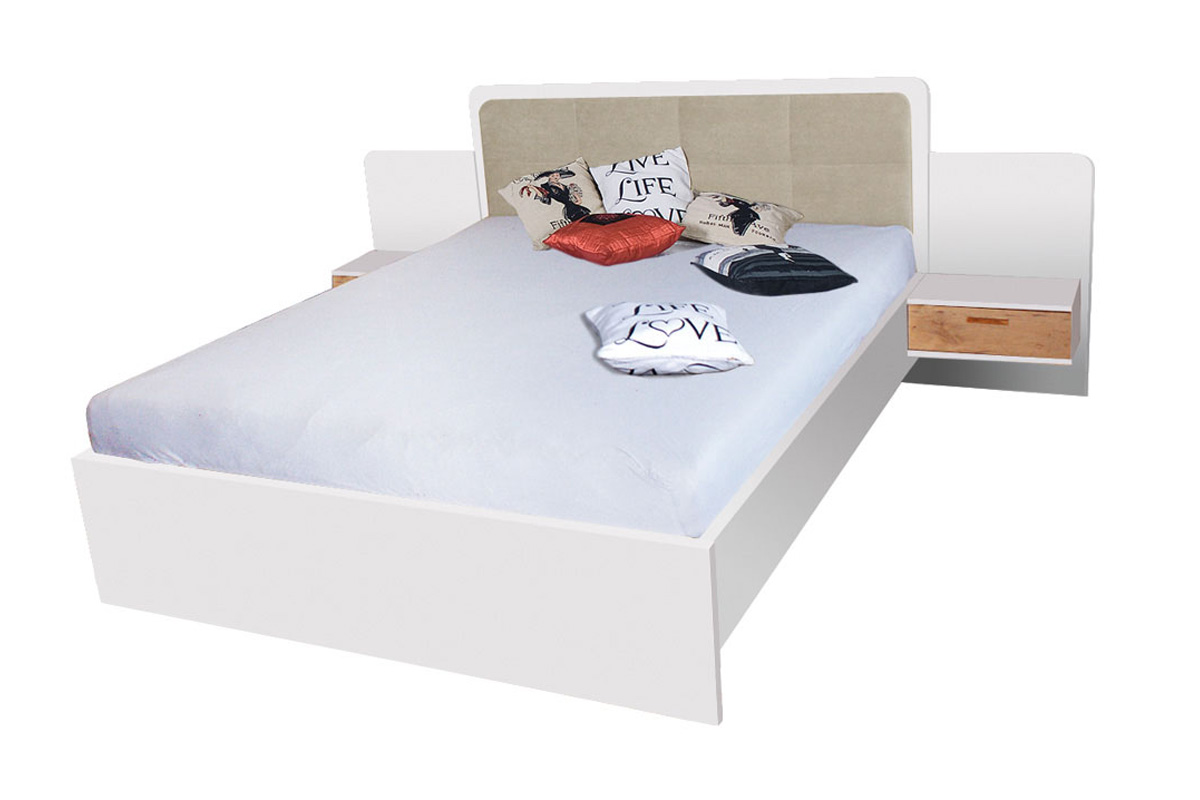 Elegantná manželská posteľ BANDI je v nadčasovom prevedení. Poteší aj náročnejších užívateľov.Je vyrobená z kvalitných LTD dosiek. Čelo postele je čalúnené kvalitnou látkou ENZA 151. Manželská posteľ je vo farebnom prevedení Andersen. Fronty nočných stolíkov je vo farbe Lancelot.Manželská posteľ obsahuje dva nočné stolíky. Každý stolík disponuje jednou praktickou zásuvkou. Spacia plocha postele: 200 x 160 cm.Matrac a rošt postele nie je v cene. Je potrebné si ich dokúpiť o veľkosti 2 krát 80 x 200 cm, resp. 160 x 200 cm.Rozmery (š,v,h): 275 x 101 x 208 cm. Šírka bez nočných stolíkov je 165 cm.K manželskej posteli je možné dokúpiť štýlovú šatníkovu skriňu BANDI, ktorá je v rovnakom farebnom prevedení.Dodávame v demontovanom stave. Záruka 24 mesiacov.