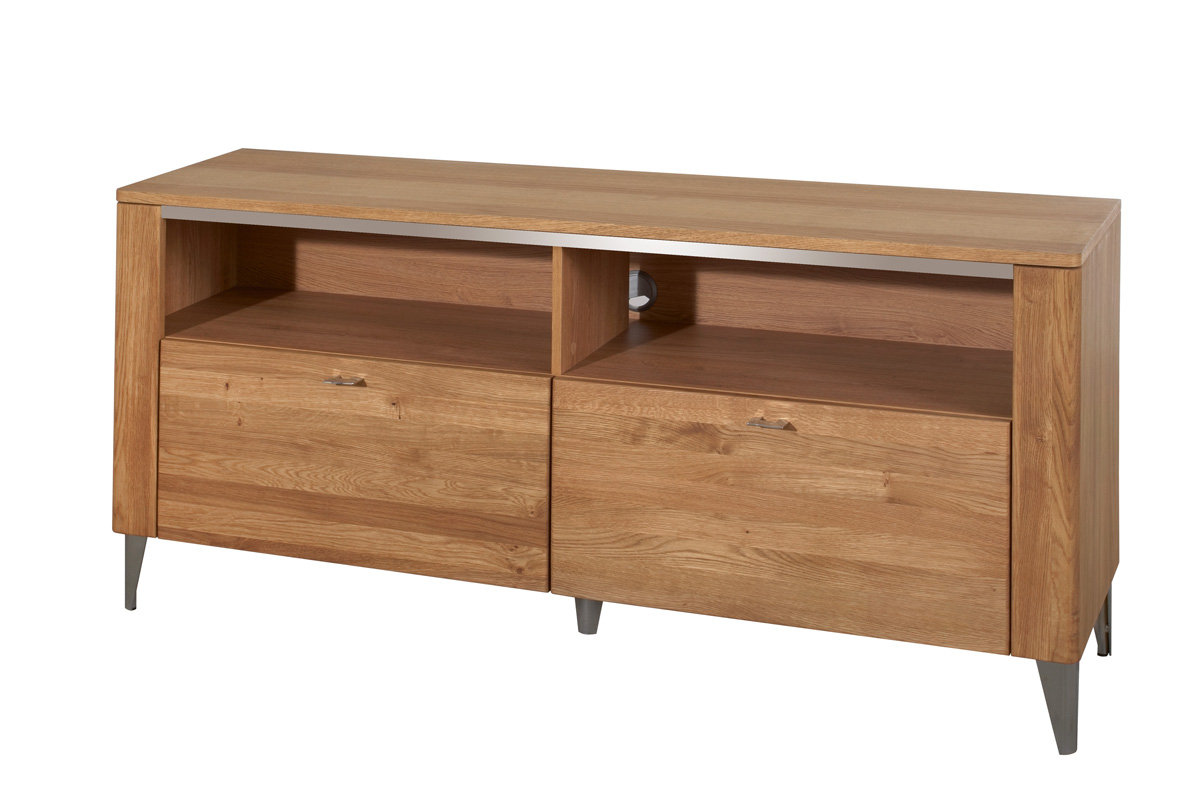 Televízny stolík BANDY je v elegantnom a atraktívnom prevedení. Poteší a zaujme aj náročných užívateľov.Korpus TV stolíka je vyrobený z prírodnej dyhy. Predná časť je vyrobená z masívu dubového dreva. Úchyty sú pochrómované, v striebornej farbe. Nábytok disponuje vysokými elegantnými nožičkami. Farebné prevedenie: dub medový. Televízny stolík disponuje dvomi praktickými zásuvkami. Vo vrchnej časti sú dva otvorené úložné priestory, vhodné na wifi router, DVD prehrávač a podobne.Rozmery (š,v,h): 155 x 70 x 42 cm.Dodávame už v zmontovanom stave!