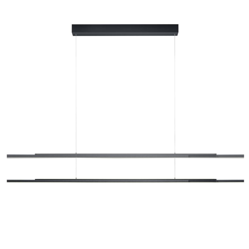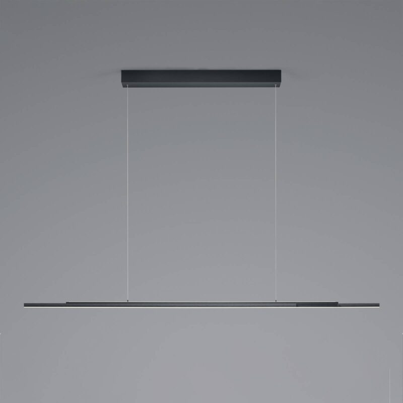 Závesné svietidlo Lightline V2 s multifunkčným prepínateľným osvetlením LED Závesné svietidlo Lightline V2 LED žiari minimalistickým dizajnom a mnohými funkciami v oblasti regulácie svetla. Vďaka neutrálnej farebnej schéme v antracitovej farbe sa hodí k mnohým farbám nábytku a poskytuje napr. individuálne prispôsobené osvetlenie stola. V tienidle závesného svietidla Lightline V2 LED sú zabudované svetelné zdroje, ktoré na jednej strane nepriamo svietia smerom nahor a poskytujú príjemné ambientné osvetlenie a na druhej strane poskytujú priame osvetlenie smerom nadol. Svetelné zdroje sa dajú prepínať – aj samostatne – pomocou snímača umiestneného v hornom strede tienidla jednoduchým pohybom ruky. Výšku a dĺžku tienidla tejto závesnej lampy možno tiež nastaviť. – Integrovaná funkcia stmievania a ohrievania: Pri stmievaní sa svetlo stáva teplejším – vybavené funkciou vertikálneho stmievania: ovládanie svetla miernym naklonením (od 12 stupňov) telesa svietidla – zapnutie/vypnutie, ako aj plynulé stmievanie (nie je možné pripojiť stmievač) – so senzorovým ovládaním: možno ovládať zhora: na zapnutie alebo vypnutie svetelných zdrojov stačí krátke zotretie rukou.