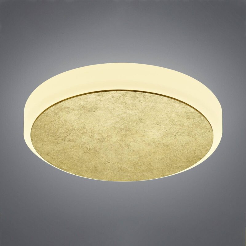 Stmievateľné dekoratívne svietidlo LED Luce elevata Button – možno použiť aj ako nástenné svietidlo Toto okrúhle stropné svietidlo LED zaujme svojou jednoduchou eleganciou, ako aj nepriamym vyžarovaním svetla, ktoré na jednej strane vykresľuje na strope nádherný svetelný prstenec a na druhej strane zvýrazňuje dekoratívny zlatý vzhľad krytu svietidla. Jas stropného svietidla LED Luce elevata Button možno regulovať pomocou externého stmievača s prerušovanou fázou. Okrem toho je integrovaná funkcia stmievania, ktorá spôsobuje, že svetlo sa s procesom stmievania stáva teplejším, čo vytvára veľmi útulnú atmosféru.