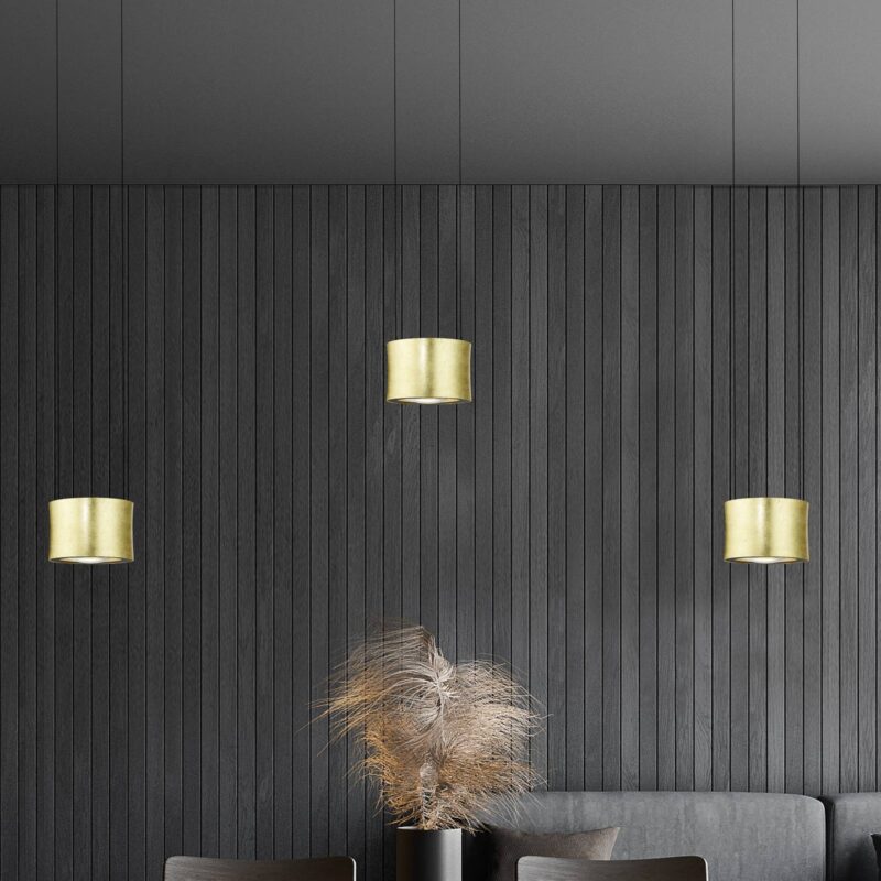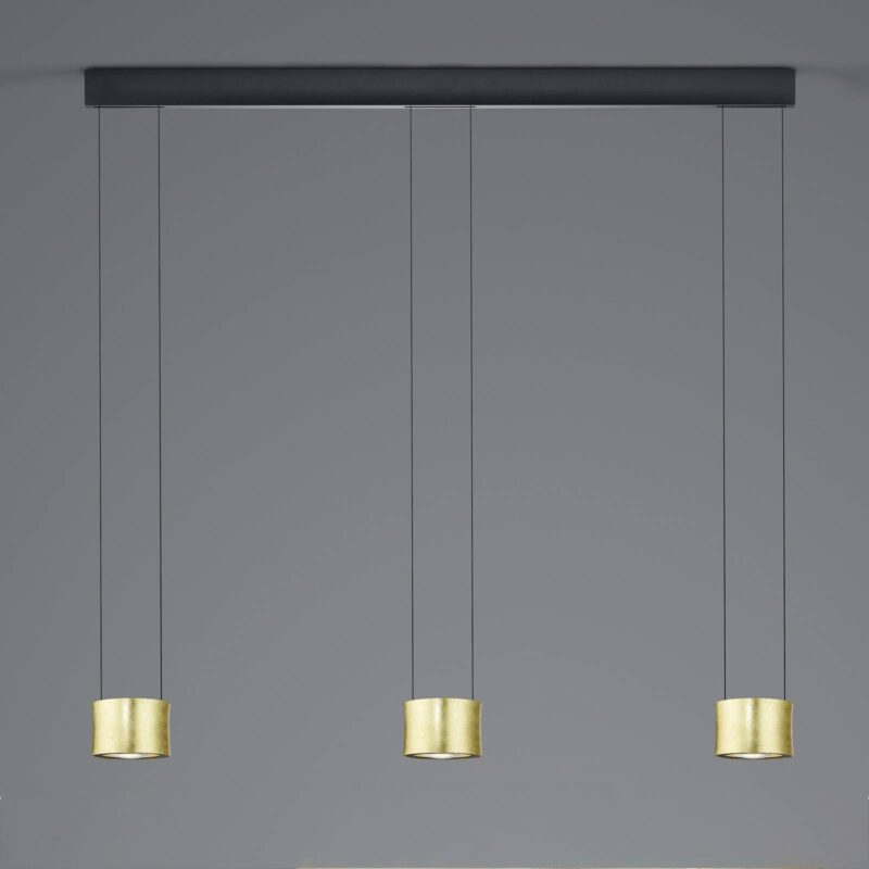 Elegantná závesná LED lampa Luce elevata ImpulseTáto závesná LED lampa už po vypnutí šíri v modernom obytnom priestore elegantný šmrnc vďaka farebnej kombinácii v optike zlatých listov a čiernej farby. Akonáhle sa osvetlenie zapne, tento efekt sa zintenzívni vďaka príjemnému, teplému bielemu svetlu LED diód inštalovaných v troch jednotlivých svietidlách, ktoré cielene vyžaruje smerom nadol. Teplú bielu farbu svetla je možné stlmiť pomocou integrovanej funkcie stmievania na teplú fázu pomocou stmievača s fázovým rezom do takej miery, že vznikne dojem mäkkého svetla sviečok a dosiahne sa veľmi útulná atmosféra.- Výškovo nastaviteľné