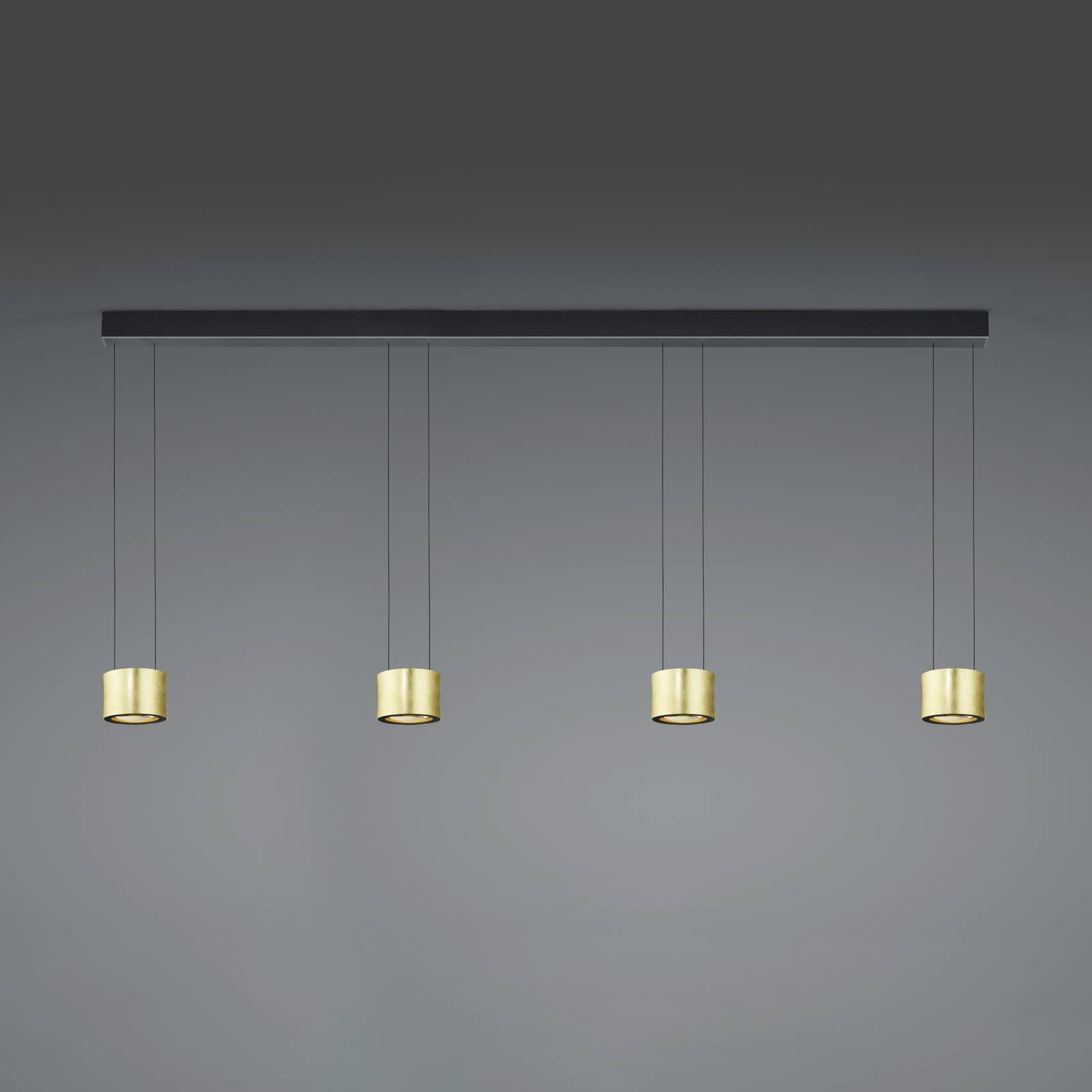 Výškovo nastaviteľné v prevádzke: závesné svietidlo so štyrmi žiarovkami LED Luce elevata Impulse Flex, vzhľad zlatého listu, tlmené až teplé Táto verzia vysokokvalitného závesného svietidla LED Luce elevata Impulse Flex sa dodáva so štyrmi tienidlami, ktoré svietia priamo nadol aj nepriamo nahor. Luce elevata“ je názov, ktorý dal výrobca BANKAMP obzvlášť prepracovaným verziám svojich sériových modelov. Tienidlá vyrobené z hliníka majú ušľachtilú povrchovú úpravu vo vzhľade plátkového zlata, ktorá bola spracovaná ručne. Nosníková strieška, takisto vyrobená z hliníka, ich podopiera a umožňuje individuálne a ručné nastavenie zavesenia jednotlivých tienidiel kedykoľvek počas prevádzky. Integrované LED diódy majú dobré podanie farieb a produkujú teplé biele svetlo, ktoré sa dá externe stlmiť pomocou triaku. S klesajúcou intenzitou svetla klesá aj teplota farby, čo poskytuje teplejšiu farbu svetla a príjemnú atmosféru (stmievanie až po teplé). Luce elevata Impulse Flex sa vyrába v Nemecku a vyrába sa ručne. Je ďalším dôkazom kvality manufaktúry na výrobu svietidiel BANKAMP, ktorá sídli v regióne Sauerland od roku 1947 a ktorú vytvoril Bernd Beisse.