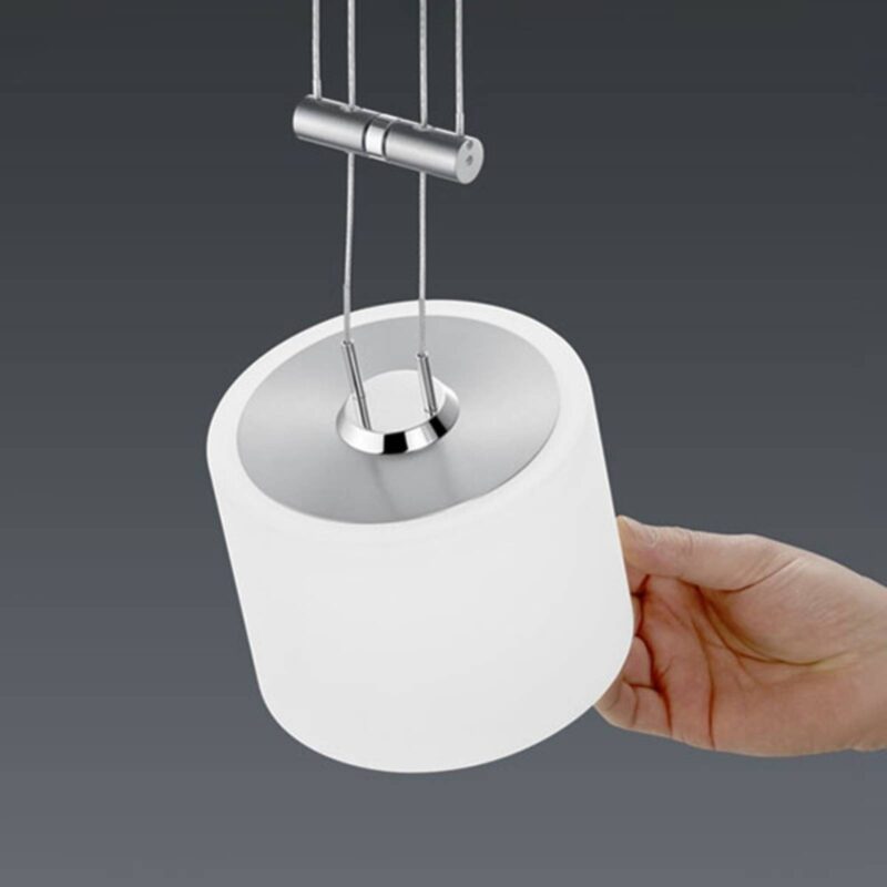 Nepriamo svietiace závesné svietidlo LED Strada Gracia Závesné svietidlo LED Strada Gracia pozostáva zo stropnej lišty, ktorá svojimi svetelnými jednotkami LED vytvára nepriame svetlo priamo na strope. Štyri prívesky sa potom pripevnia na koľajnicu. Dajú sa posúvať po celej dĺžke koľajnice a vďaka systému kladiek sa veľmi ľahko nastavujú v závese. Opálovo biele sklenené tienidlá závesného svietidla ukrývajú množstvo funkcií, ktoré z neho robia skutočný funkčný talent. Metóda „vertikálneho stmievania“ umožňuje stmievať závesné svietidlá jednoduchým naklonením tienidiel. Na tento účel sa tienidlo uchopí v jednom bode a jednoducho sa posunie nahor. Snímač reaguje a stlmí svietidlo už od uhla naklonenia 12°. Okrem toho je svietidlo vybavené bezdrôtovou technológiou ZigBee, takže ho možno pripojiť k bráne ZigBee a ovládať pomocou aplikácie alebo hlasového asistenta. Funkcia „stlmenie na teplé“ upravuje farbu svetla pri stlmení svietidla, takže napríklad pri stmievaní sa farba svetla pomaly stlmí na odtieň svetla sviečky, čo prispieva k útulnej atmosfére. Poznámka: Osvetlenie na baldachýne nie je stmievateľné ani ovládateľné cez ZigBee.