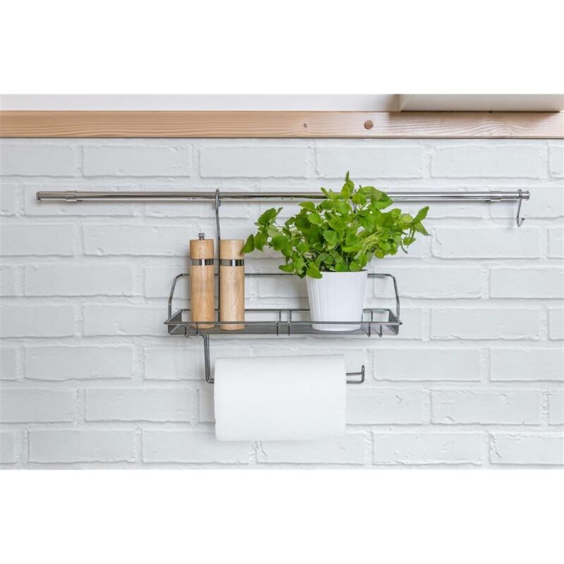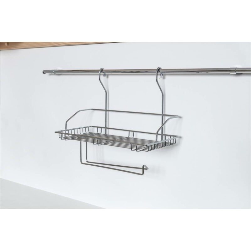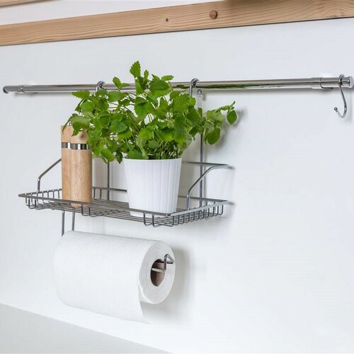 Táto závesná polička VARIELLA s rozmermi 40 x 34 x 21 cm s praktickým držiakom na papierové utierky je vyrobená z pochrómovaného oceľového drôtu. Táto polička sa stane potrebným pomocníkom vo vašej domácnosti a umožní vám mať všetko pekne na očiach a po ruke.Odporúčame zavesiť na závesnú tyč VARIELLA.