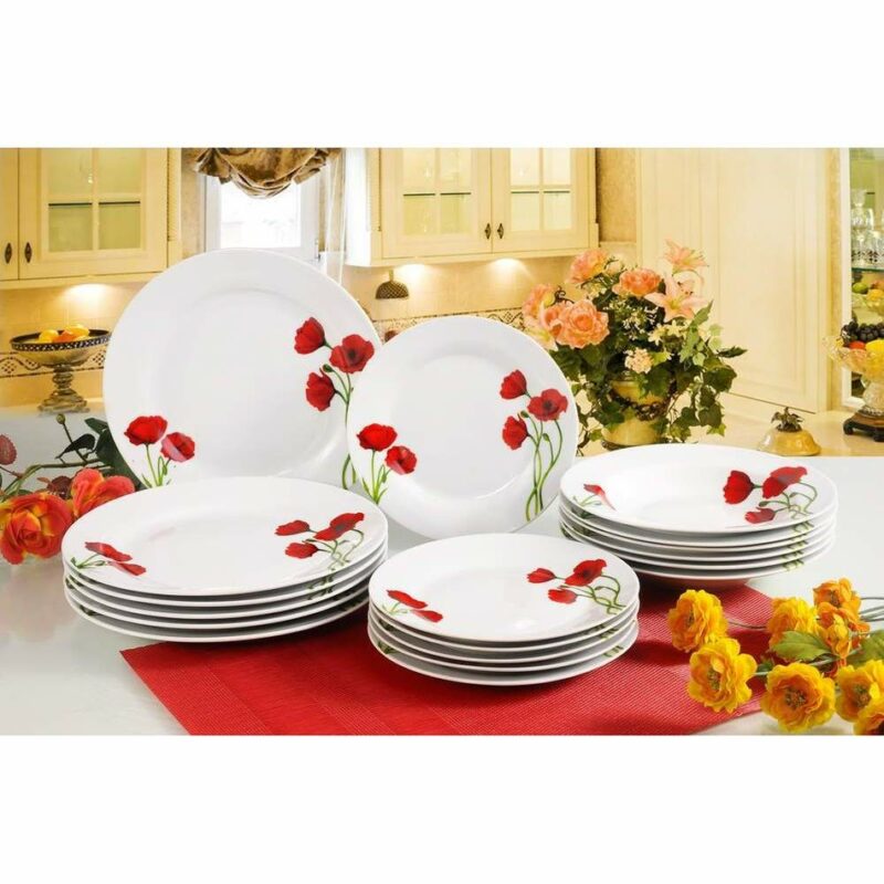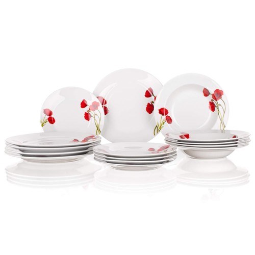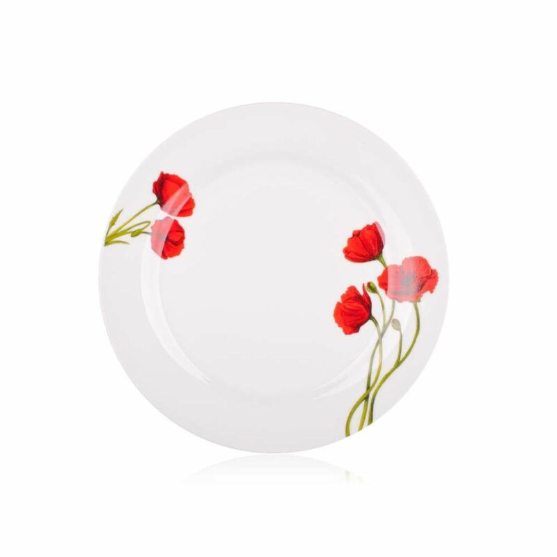 Užite si kúzlo leta a rozkvitnutých vlčích makov po celý rok. Kolekcia Red Poppy v energickej červenej farbe prináša oživenie pre každý jedálenský stôl. Vyrobená z kvalitného porcelánu. Obľúbený motív prinesie vašej kuchyni radosť aj pohodovú atmosféru vidieka. Na tejto jedálenskej súprave tanierov už neostane ani omrvinka. Kto by si tiež nechal ujsť dokonalý vzor, ktorý sa ukáže iba pravým jedákom. Ak tiahnete k romantickým kvetinovým vzorom, ktoré človeka zároveň nezahltia presladenými tónmi, potom je táto kolekcia tou pravou pre vás. Celú kolekciu Red Poppy nájdete TU.Súprava obsahuje: