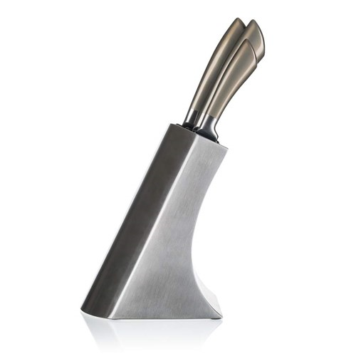Sada 5 nožov je vhodná pre každodenné použitie v kuchyni. Bez kvalitného noža si možno len ťažko predstaviť varenie. Nože máte vďaka elegantnému stojanu hneď po ruke a navyše sú aj pekným doplnkom do každej kuchyne. Stojan, čepele aj rukoväte nožov sú vyrobené z nerezovej ocele.Sada obsahuje: