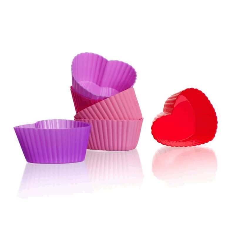 6-dielna sada silikónových srdiečok na výrobu rôznych sladkých a slaných múčnikov. Silikón je odolný voči vysokým teplotám (do 240 °C), upečené cesto možno ľahko vyklopiť. Formičky sa dobre udržujú (možno umývať v umývačke riadu).Silikón je veľmi populárny materiál, ktorý pre svoje jedinečné vlastnosti našiel uplatnenie aj v kuchyni. Vyrába sa z neho rôzne druhy foriem na pečenie, vály a valčeky na cesto, stierky, pierka, kuchynské náčinie a mnoho ďalších výrobkov.