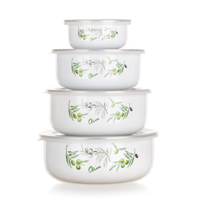 8-dielna sada smaltovaných misiek Olives jednoducho vyrieši váš problém so skladovaním potravín. Misky sú stohovateľné a sú určené iba na skladovanie, nie na varenie.Sada obsahuje: