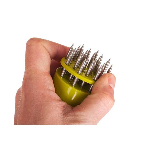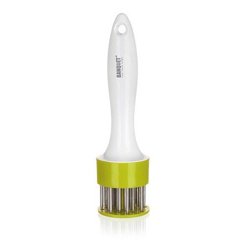 Zmäkčovač mäsa Culinaria má ostré ihly, ktoré narežú a skrátia vlákna mäsa a vďaka tejto úprave je mäso krehké, šťavnaté a mäkké. Tenderizer je vhodný na všetky druhy červeného mäsa. Pomocník pre skutočných gurmánov, nerezové ihly prevzdušnia mäso, ktoré sa tak lepšie prepečie.
