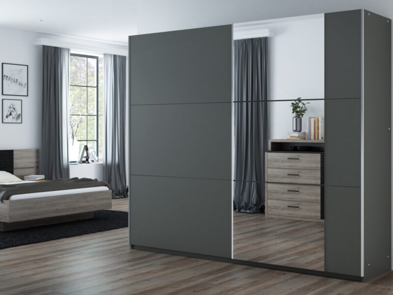 BASIA 250 šatníková skriňa s posuvnými dverami, grafit