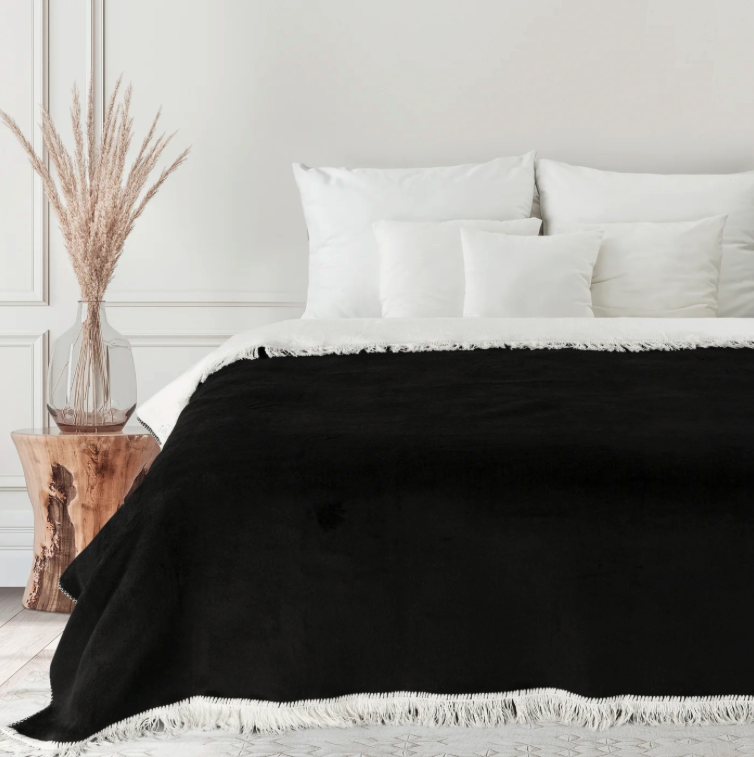 Bavlnená deka so strapcami – čierna Šírka: 150 cm | Dĺžka: 200 cm