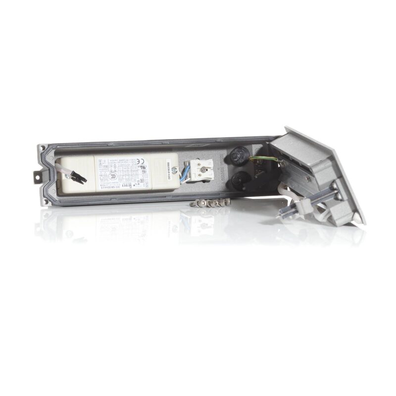 Nástenné svietidlo LED s asymetrickým rozložením svetla Toto nástenné svietidlo LED je vyrobené z hliníka a nehrdzavejúcej ocele a má nenápadnú farbu. Inštaluje sa do steny a splýva s fasádou. Po celej šírke svietidla sa tiahne zárez, ktorý je spracovaný smerom dovnútra ako trojuholník a v ktorom sú umiestnené teplé biele LED diódy v trochu skrytej polohe. Tento tvar zabezpečuje asymetrické rozloženie svetla a smeruje svetelný lúč presne tam, kde je to potrebné. To zároveň zabraňuje oslneniu, čo je dôležité najmä v tme. Zapustené svietidlo možno použiť vo vonkajšom prostredí na schodoch, chodníkoch, fasádach domov alebo dokonca pri vchodoch a vďaka stupňu krytia IP65 je na to ideálne vybavené. Je vhodné aj na priechodné zapojenie a zaručuje bezpečné osvetlenie v noci a spoľahlivú orientáciu, najmä v kombinácii s inými svietidlami.