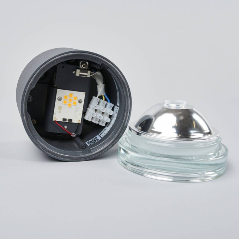 Kompaktné a výkonné reflektorové LED svietidlo 66056K3 z hliníkovej liatiny so širokým uhlom rozptylu svetla Výkonné stropné reflektorové LED svietidlo 66056K3 vyžaruje svetlo pod uhlom 62° smerom nadol a vďaka čiastočne matnému krištáľovému sklu disponuje okrem toho aj zvýšenou vertikálnou intenzitou svetla. Výsledkom je rozmanitá hra svetla s príjemným vizuálnym pohodlím. V prípade stropného LED svietidla 66056K3 ide o industriálne svietidlo na riešenie mnohých úloh týkajúcich sa osvetlenia. Osvetlí súkromné vstupné priestory, ako aj exteriéry verejných budov, úradov či obchodov. Reflektorové svietidlo s grafitovo sivým lakovaním vyžaruje teplé biele svetlo. Stupeň ochrany IP65 mu poskytuje ochranu pred všetkými poveternostnými podmienkami, pričom sa vyznačuje vysokou kvalitou vypracovania, ktorá je v kombinácii s modernou LED svetelnou technológiou zárukou trváceho a efektívneho zdroja svetla pre exteriéry.