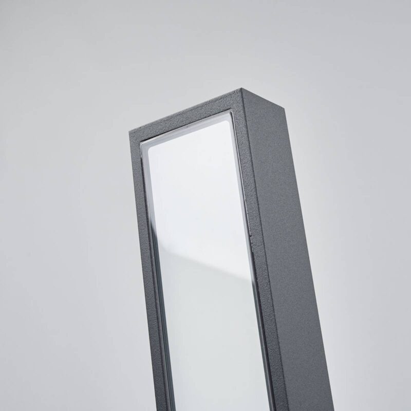 77246K3 – exteriérové stojanové LED svietidlo voľne svietiace na jednu stranu s hranatým dizajnom Horná polovica exteriérového stojanového LED svietidla 77246K3 je z jednej strany pokrytá bielym bezpečnostným sklom, cez ktoré svetlo voľne vyžaruje. Je mimoriadne vhodné na tmavšie miesta, ktoré musia byť osvetlené iba z jednej strany. Svietidlo vyrobené z hliníkovej liatiny sa dodáva s podzemným podstavcom vyrobeným zo žiarovo pozinkovanej ocele. Ten je zabetónovaný v zemi. Do elektrickej siete sa svietidlo zapojí káblovým vedením, následne sa zastrčí do podzemného podstavca a zaskrutkuje. Trvácnosť exteriérového stojanového LED svietidla 77246K3 od spoločnosti BEGA zaručuje vysoká kvalita použitých materiálov a moderná LED technológia. Minimálna životnosť zabudovaných LED diód predstavuje približne 50 000 hodín. Stupeň krytia IP65