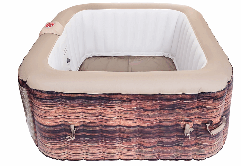 Praktické tipy na čistenie a starostlivosť o vírivku nájdete v článku Ako udržiavať nafukovaciu vírivku . Farba: mahagónové obloženie, Šírka celkom: 1550 x 1550, Výška celkom: 650, Vnútorný rozmer: 1150 x 1150, Hmotnosť: 27, Určené pre: 4 osôb, Voda: sladká, Materiál: 0,60 mm / 24 kaliber K80 stále PVC, Objem: 600, Filtrační mechanizmus: kartušový filter s krycou textíliou, Filtrácia: AC 12 V, 50 Hz 30 W, 1880 l, Blower: 600, Výhrev vody: 1 800W/1,36HP, Elektrické napätie: 220-240V, 50Hz, Počet vzduchových trysiek: 130, Ochrana: kryt, Elektronické zmäkčenie vody: nie, Bublinky + masáž: áno, Trysky masážne: nie, Dĺžka kábla: 3, Balenie: 530 x 435 x 770, Podložka pod vírivku: áno, Krycia plachta: áno – Ochranný termokryt s uzamykateľnými prackami