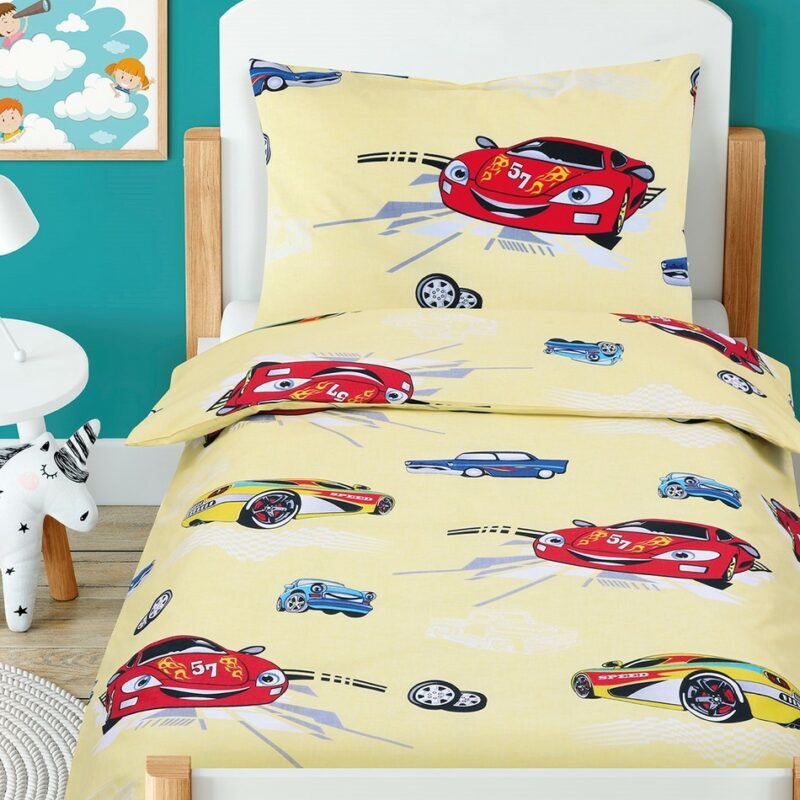 Domovská stránka » Katalóg » Bellatex Detské bavlnené obliečky do postieľky Beáta Pretekárske autá žltá, 100 x 135 cm, 45 x 60 cm