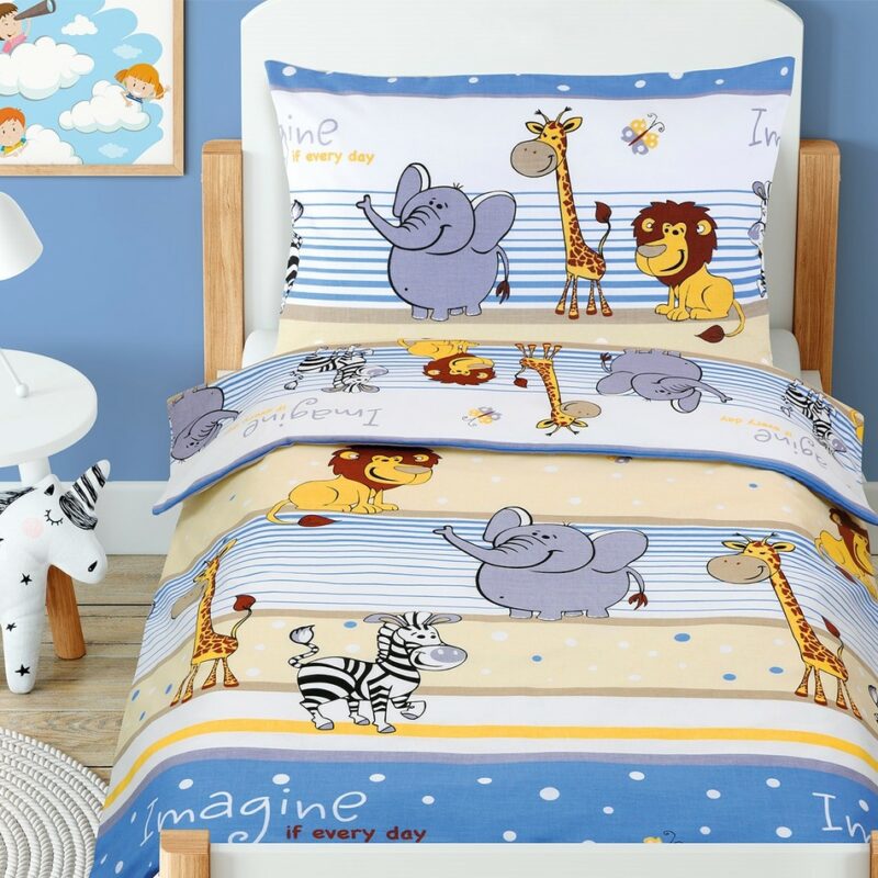 Bellatex Detské bavlnené obliečky do postieľky Beáta Safari modrá, 100 x 135 cm, 45 x 60 cm