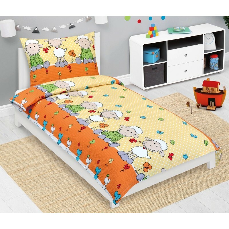 Bellatex Detské krepové obliečky Ovečka žltá, 140 x 200, 70 x 90 cm