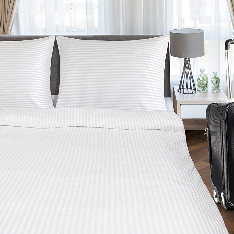 Obliečky s hotelovým uzáverom, pevná bavlna s prúžkom 1 cm, hotelmi a penziónmi veľmi obľúbené. Jedná sa o overený produkt. Odporúča sa do penziónov, nemocníc, domovov dôchodcov a ďalších. Súprava obsahuje: