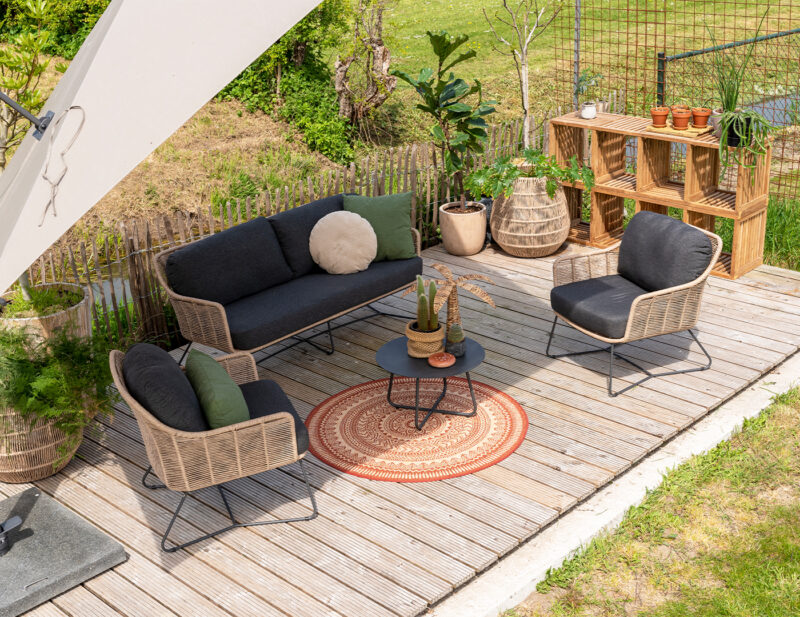 Belmond Dali sedacia súprava natur ponúka pohodlné posedenie s elegantným dizajnom. Dopĺňa ju praktický konferenčný stolík Dali, ideálny na vonkajšie použitie.