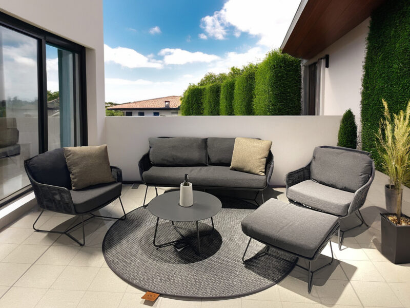 Štýlová sedacia súprava s nadčasovým dizajnom v antracitovej farbe perfektne zapasuje do akejkoľvek záhrady či na terasu.
