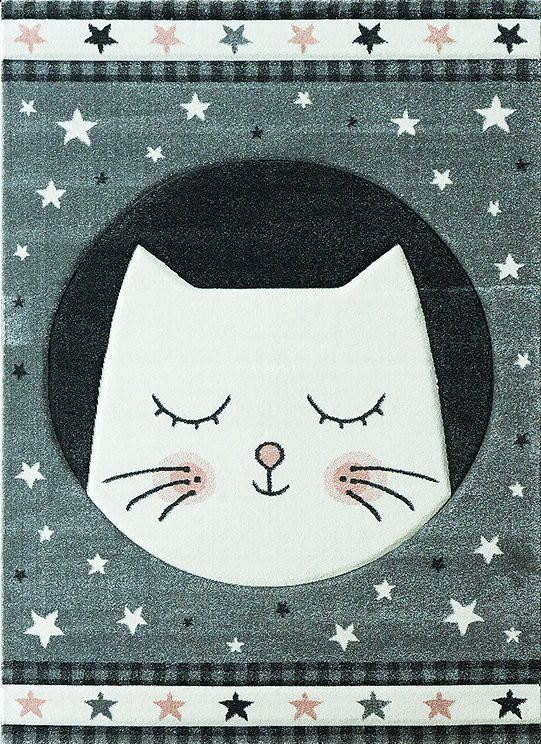 Roztomilá mačička, ktorá už je v ríši snov, sa stane skvelou kamarátkou každého dieťaťa, pričom šedá farba sa hodí do dievčenských aj chlapčenských izieb. Koberec je mäkučký a zároveň odolný, pretože sa vyrába z polypropylénu frisé