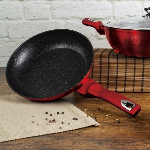 Panvica Burgundy Metallic Line značky Berlinger Haus – ideálny pomocník pre začínajúcich i skúsených kuchárov a tiež elegantný doplnok kuchyne. Panvica je vyrobená z vysoko odolného kovaného hliníka. Vďaka 3-vrstvému nepriľnavému mramorovému povrchu sa vám žiadne jedlo nepripáli. Turbo indukčné dno ušetrí až 35% energie a umožňuje rovnomerné prepekanie mäsa, mäsových zmesí a iných špecialít. Jedlo si zachováva svoju prirodzenú chuť a šťavnatosť. Panvicu je možné použiť na všetky typy varných dosiek – elektrické, plynové, sklokeramické aj indukčné.Vlastnosti a špecifikácie: