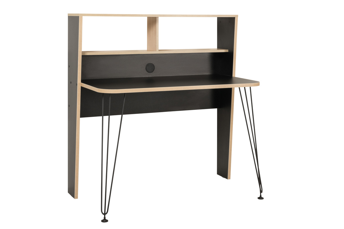 Písací stôl BERNIE patrí medzi menšie písacie stoly. Napriek tomu je to praktický nábytok, ktorý využíva priestor a ponúka viacero zaujímavostí. Nadstavba nad stolom vytvára praktický priestor pre odloženie rôznych predmetov, kníh či písomností. Súčasne zabráni pádu predmetov za stôl. Štýlové nohy stola dodávajú nábytku šmrnc. Nábytok je vyrobený z kvalitnej LTD dosky, ktorej údržba nie je náročná. Farebné prevedenie je v kombinácii farieb čierna a dub sonoma. Kontrastné farby dodávajú zaujímavý vzhľad a zvýrazňujú celkový dizajn. Oceníte aj efektné zaoblenie hrán stola, ktoré zvýši bezpečnosť.Rozmery stola (š/v/h): 115/117/64 cm. Dodávame v demonte.Tento unikátny kus nábytku je ideálny do detskej izby aj pracovne a vďaka jeho kvalitám si ho určite obľúbite. V našej ponuke nájdete aj ďalšie prvky nábytku BERNIE.