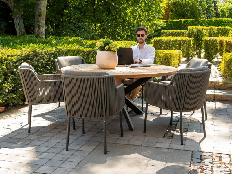 Elegantná stolová súprava Bernini vo vzdušnom šedom prevedení vhodná do každej záhrady.