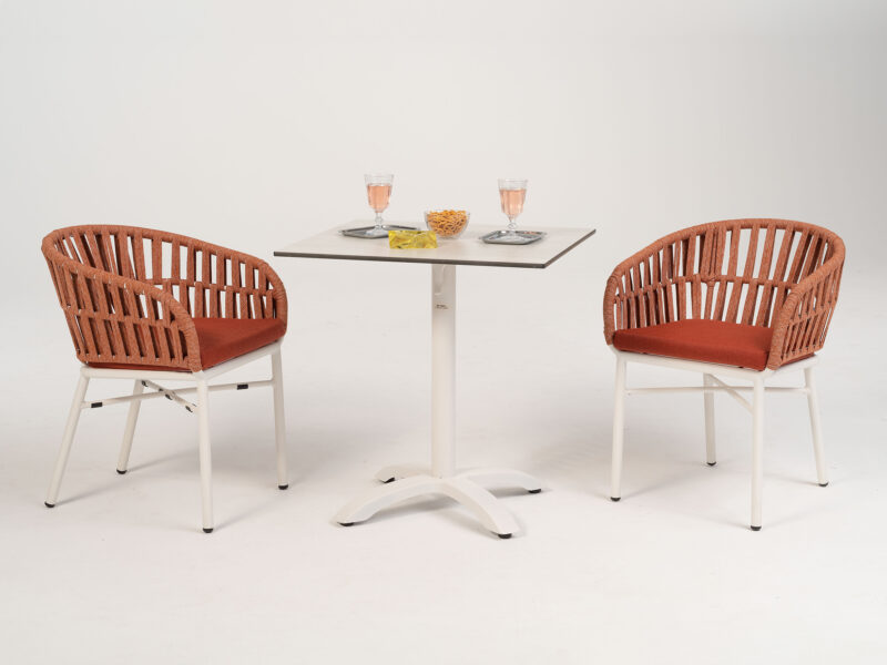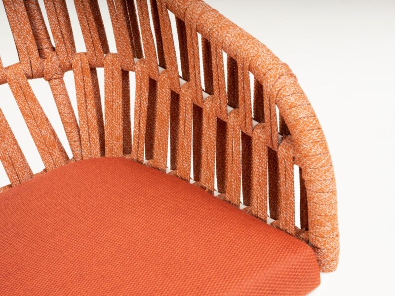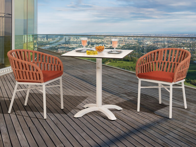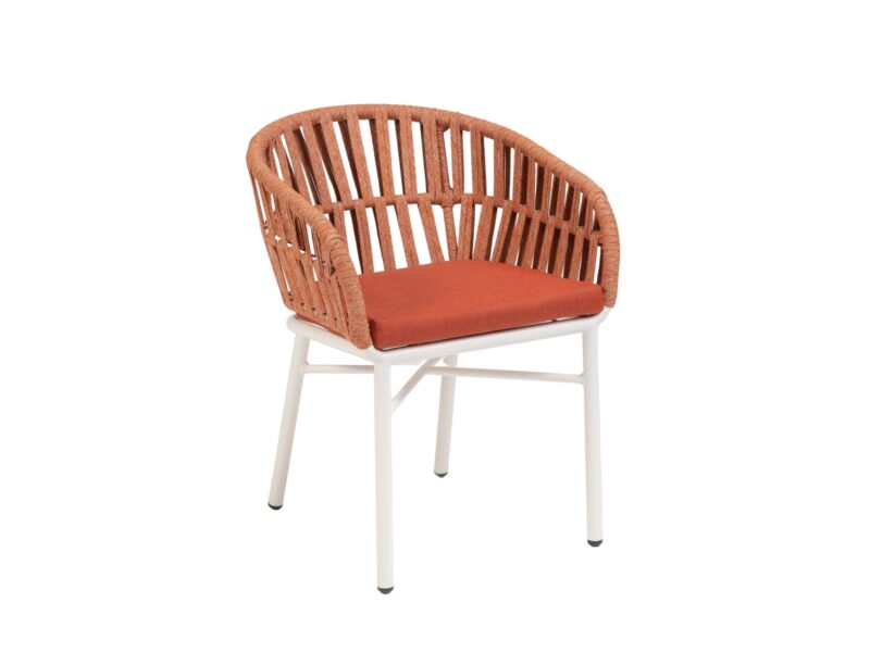Záhradná jedálenská stolička z kolekcie Berry je prispôsobená dlhému sedeniu na terase.