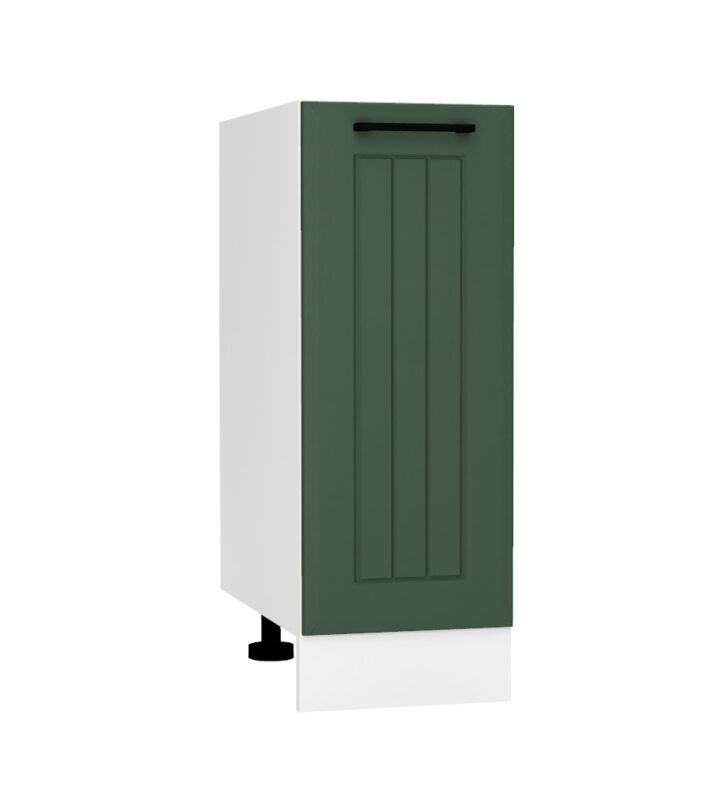 Kuchyňa BERTA patrí do skupiny kuchynského nábytku, ktorá sa vyznačuje svojim klasickým vzhľadom v modernom prevedení. Funkčný a štýlový nábytok upúta vašu pozornosť svojimi klasickými prvkami. Vďaka frézovaným pásom použitým na prednej strane skriniek plne zapadá do trendov súčasnosti.Korpus nábytku je vyrobený zo 16 mm hrubej LTD dosky v bielom prevedení. Predné dvierka sú z MDF dosky s hrúbkou 19 mm. Sú potiahnuté PVC fóliou.Dolná kuchynská skrinka je v zelenom farebnom prevedení, s matným povrchom. Rozmery (š,v,h): 30 x 82 x 52,4 cm.Súčasťou je sokel v bielej farbe a nožičky.Pracovná doska a úchyty nie sú v cene. Je potrebné ich doobjednať.Dodávame v demontovanom stave.