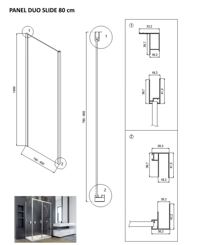 Samostatný bočný panel DUO SLIDE BLACK nie je určená ako samostatne stojaca zástena, slúži na kombináciu so sprchovými dverami DUO SLIDE BLACK . Spojením pevnej steny a dverí vzniká kompletný obdĺžnikový sprchovací kút, vďaka možnosti kombinácie rozmerov je ideálny pre riešenie atypických priestorov. Výplň tvorí 6 mm číre bezpečnostné sklo. !!! K dodaniu od 08/2022 !!! !!! K dodaniu od 08/2022 !!! Neslúži ako samostatný sprchovací kút alebo zástena, je určená iba pre kombináciu so sprchovými dverami DUO SLIDE BLACK . Kombináciou bočného panelu a sprchových dverí vytvoríte sprchovací kút. Panel je univerzálny pre ľavé aj pravé prevedenie a bez vaničky. Sprchový kút, tvorený z pevnej steny DUO SLIDE BLACK a sprchových dverí je možné inštalovať na sprchové vaničky alebo veľmi elegantný priamo na podlahu. Pri montáži priamo na podlahu sú veľmi efektívnym riešením na odvod vody podlahové odtokové žľaby . Pozrite sa na bohatú ponuku dizajnových doplnkov Olsen Spa pre tento elegantný sprchovací kút. A spestrite dizajn svojej novej kúpeľne. Vyberte si z našej bohatej ponuky, sprchová batéria skvele doplní dizajn vášho sprchového kúta, sprchová ružica s masážnymi tryskami zaistí komfort pri sprchovaní a držiak sprchovej ružice za skvelú cenu. Sprchové poličky a kúpeľňová chémia pre ľahkú údržbu a poriadok v celej vašej kúpeľni. Sprchový hydromasážny panel posunie Vaše sprchovanie na úplne novú úroveň a to sa stane skutočným zážitkom. Rozmery a parametre bočného panelu DUO SLIDE BLACK : Farba hliníkového rámu: čierna Bezpečnostné číre 6 mm Montážny rozmer pre šírku 80 cm: 78 – 80× 195 cm Montážny rozmer pre šírku 90 cm: 88 – 90 × 195 cm Univerzálne pravé/ľavé prevedenie Záruka 3 roky(GT) Ean: 8596462572473