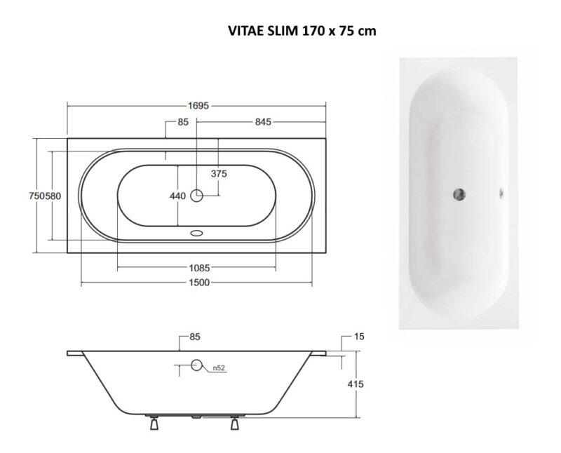 BESCO – Obdĺžniková vaňa VITAE SLIM – Nožičky k vani – S nožičkami, Rozmer vane – 170 × 75 cm VANVITAE170SLIM + OLVPINOZ