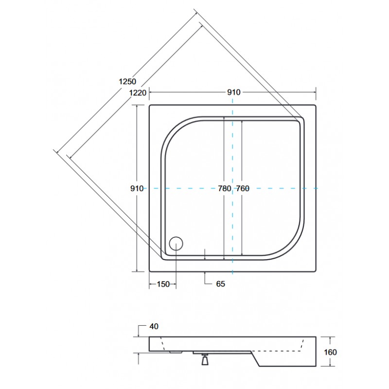BESCO – OSKAR STONE EFFECT štvorcová sprchová vanička – Rozmer A – 91 cm, Rozmer B – 91 cm, Rozmer C – 16 cm OLBVANACOSK90S