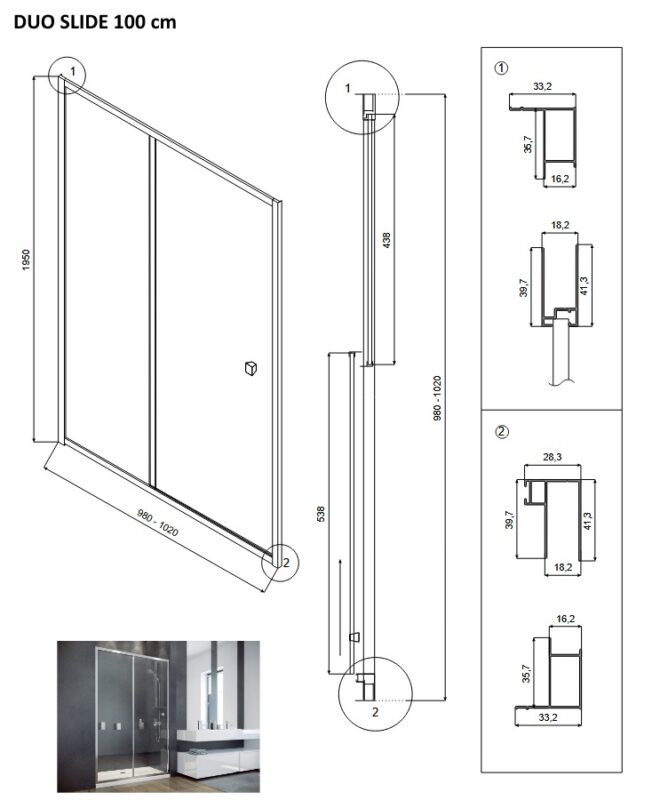 Robustné dvojité sprchové dvere DUO SLIDE BLACK s moderným dizajnom, predstavujú veľmi podarený čistý dizajn, ktorý zvýrazňuje dokonale tvarovaný rám z hliníka v čiernej farbe . Posuvné otváranie sprchových dverí je navrhnuté ako univerzálne . Sprchové dvere s posuvným otváraním predstavujú riešenie pre rozmerné murované kúty a niky v rozmeroch od 100 cm do 140 cm . Univerzálne pravé aj ľavé prevedenie. Dvere je možné kombinovať s pevnou stenou DUO SLIDE BLACK čím vytvoríme sprchovací kút. !!! K dodaniu od 08/2022 !!! !!! K dodaniu od 08/2022 !!! Dvojité sprchové dvere tvoria posuvné sklenené steny, riešia atypické vstupy v priestranných kúpeľniach. Veľmi luxusný vzhľad. Dodáva sa v univerzálnom pravom aj ľavom prevedení. Bočné panely DUO SLIDE môžete zakúpiť tu . Montáž sprchových dverí je možná ako na vaničku (štandardne dodávané bez vaničky) alebo priamo na podlahu. Pri použití priamo na podlahu je veľmi elegantným riešením na odvod vody podlahový odtokový žľab . Pozrite sa na bohatú ponuku dizajnových doplnkov Olsen Spa pre tieto elegantné sprchové dvere . Spestrite dizajn novej modernej kúpeľne. Vyberte si z našej bohatej ponuky sprchovej hadice , sprchovej ružice a držiaky sprchových ružíc . Sprchové poličky a kúpeľňová chémia pre ľahkú údržbu a poriadok v celej vašej kúpeľni. Vaňové vodopády posunú Vaše sprchovanie na úplne novú úroveň a stane sa skutočným zážitkom. Rozmery a parametre sprchového kúta DUO SLIDE : Farba hliníkového rámu: čierna Bezpečnostné číre 6 mm Ložiskové pojazdy s vysokou životnosťou výrazne uľahčujúce údržbu Vysoko kvalitné dvojité kolieska z nylonu / ocele Možnosť vybrať a nakloniť dverné sklo Montážny rozmer pre šírku 100 cm: 98 – 102 × 195 cm, šírka vstupu : 36,5 cm Montážny rozmer pre šírku 110 cm: 108 – 112 × 195 cm, šírka vstupu : 41,5 cm Montážny rozmer pre šírku 120 cm: 118 – 122 × 195 cm, šírka vstupu: 46,5 cm Montážny rozmer pre šírku 130 cm: 128 – 132 × 195 cm, šírka vstupu : 51,5 cm Montážny rozmer pre šírku 140 cm: 138 – 142 × 195 cm, šírka vstupu : 56,5 cm Univerzálne pravé / ľavé prevedenie Záruka 3 roky(GT) Ean: 8596462573647