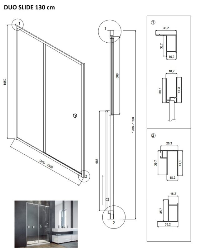 Robustné dvojité sprchové dvere DUO SLIDE BLACK s moderným dizajnom, predstavujú veľmi podarený čistý dizajn, ktorý zvýrazňuje dokonale tvarovaný rám z hliníka v čiernej farbe . Posuvné otváranie sprchových dverí je navrhnuté ako univerzálne . Sprchové dvere s posuvným otváraním predstavujú riešenie pre rozmerné murované kúty a niky v rozmeroch od 100 cm do 140 cm . Univerzálne pravé aj ľavé prevedenie. Dvere je možné kombinovať s pevnou stenou DUO SLIDE BLACK čím vytvoríme sprchovací kút. !!! K dodaniu od 08/2022 !!! !!! K dodaniu od 08/2022 !!! Dvojité sprchové dvere tvoria posuvné sklenené steny, riešia atypické vstupy v priestranných kúpeľniach. Veľmi luxusný vzhľad. Dodáva sa v univerzálnom pravom aj ľavom prevedení. Bočné panely DUO SLIDE môžete zakúpiť tu . Montáž sprchových dverí je možná ako na vaničku (štandardne dodávané bez vaničky) alebo priamo na podlahu. Pri použití priamo na podlahu je veľmi elegantným riešením na odvod vody podlahový odtokový žľab . Pozrite sa na bohatú ponuku dizajnových doplnkov Olsen Spa pre tieto elegantné sprchové dvere . Spestrite dizajn novej modernej kúpeľne. Vyberte si z našej bohatej ponuky sprchovej hadice , sprchovej ružice a držiaky sprchových ružíc . Sprchové poličky a kúpeľňová chémia pre ľahkú údržbu a poriadok v celej vašej kúpeľni. Vaňové vodopády posunú Vaše sprchovanie na úplne novú úroveň a stane sa skutočným zážitkom. Rozmery a parametre sprchového kúta DUO SLIDE : Farba hliníkového rámu: čierna Bezpečnostné číre 6 mm Ložiskové pojazdy s vysokou životnosťou výrazne uľahčujúce údržbu Vysoko kvalitné dvojité kolieska z nylonu / ocele Možnosť vybrať a nakloniť dverné sklo Montážny rozmer pre šírku 100 cm: 98 – 102 × 195 cm, šírka vstupu : 36,5 cm Montážny rozmer pre šírku 110 cm: 108 – 112 × 195 cm, šírka vstupu : 41,5 cm Montážny rozmer pre šírku 120 cm: 118 – 122 × 195 cm, šírka vstupu: 46,5 cm Montážny rozmer pre šírku 130 cm: 128 – 132 × 195 cm, šírka vstupu : 51,5 cm Montážny rozmer pre šírku 140 cm: 138 – 142 × 195 cm, šírka vstupu : 56,5 cm Univerzálne pravé / ľavé prevedenie Záruka 3 roky(GT) Ean: 8596462573579