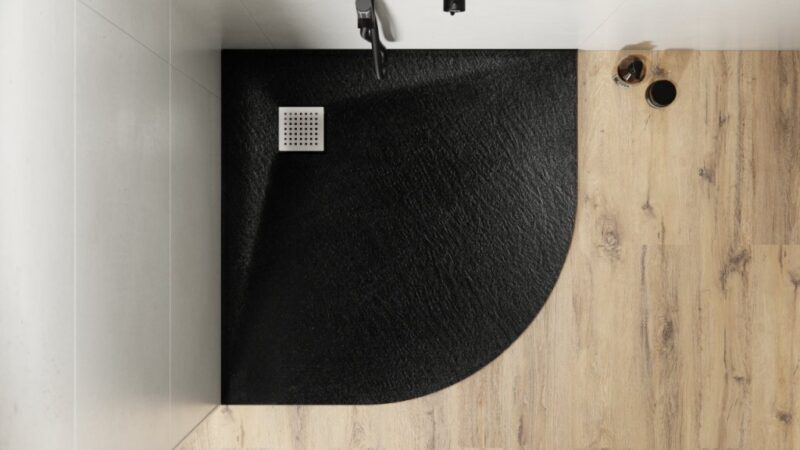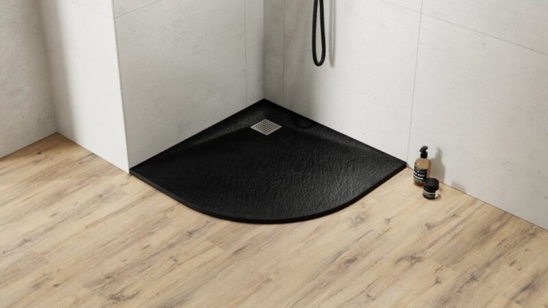 BESCO – Štvrťkruhová sprchová vanička VEXO – čierna VANKVEX90CTVRTB