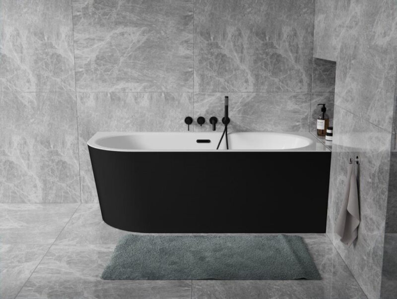 BESCO – Voľne stojaca vaňa AVITA A-LINE čierna/biela, sifón so štrbinovým prepadom – Farba sifónu – Čierna, Rozmer vane – 170 × 75 cm, Spôsob prevedenia – Pravé VANAVITAL17PBBW