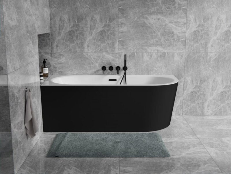 BESCO – Voľne stojaca vaňa AVITA A-LINE čierna/biela, sifón so štrbinovým prepadom – Farba sifónu – Grafitová, Rozmer vane – 170 × 75 cm, Spôsob prevedenia – Ľavé VANAVITAL17LGBW