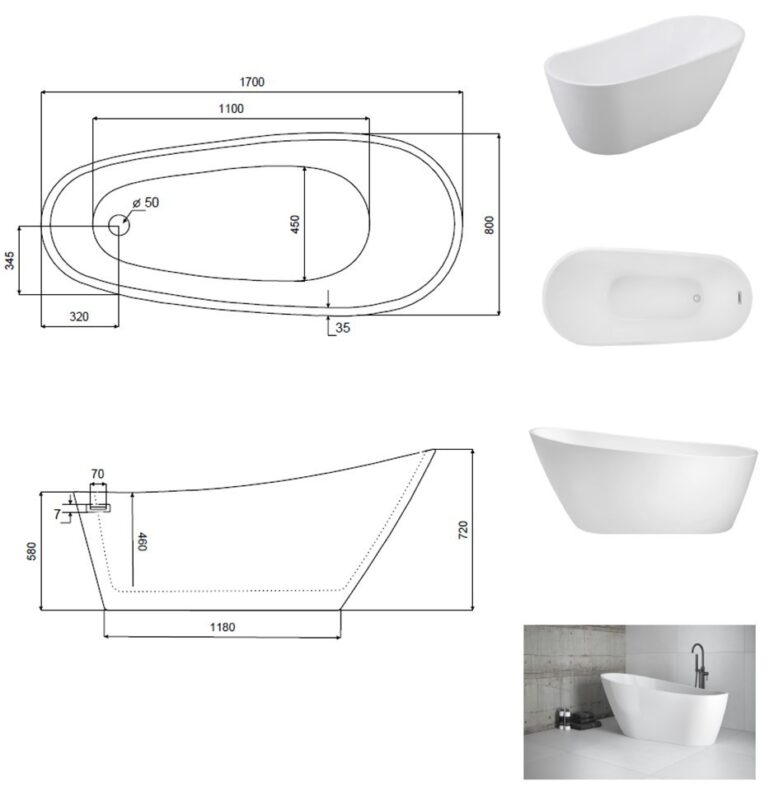 BESCO – Voľne stojaca vaňa MELODY – Farba – Biela, Rozmer vane – 170 × 80 cm VANMELODY170