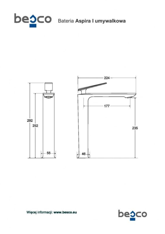 BESCO – Vysoká stojanová umývadlová batéria ASPIRA I chróm BABUAICH