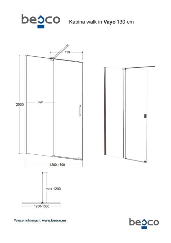 BESCO – Walk-in sprchovací kút VAYO BLACK – FARBA rámu – Čierna, Rozmer A – 130, Rozmer C – 200, Smer zatvárania – Univerzálne Ľavé / Pravé, Výplň – Číre bezpečnostné sklo – 8 mm BCVAYO130BC